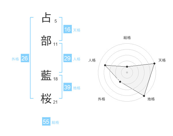 占部 藍桜さんを姓名の画数から五運を鑑定