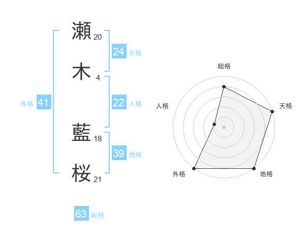 瀬木 藍桜さんの総格は63画の4点!