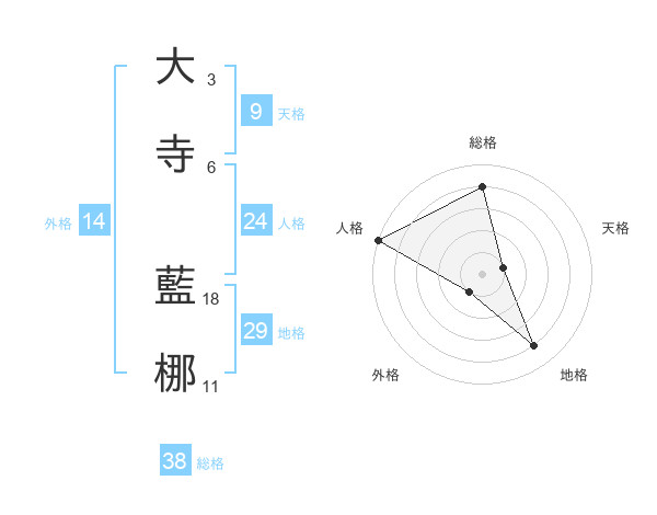 大寺 藍梛さんの総格は38画の4点!