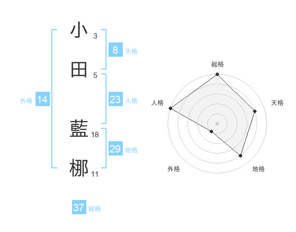 小田 藍梛さんを姓名の画数から五運を鑑定