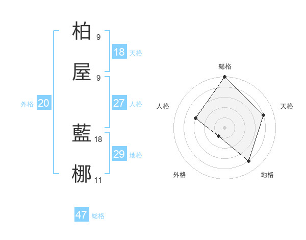 柏屋 藍梛さんを姓名の画数から五運を鑑定