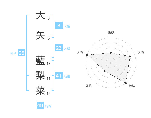 大矢 藍梨菜さんを姓名の画数から五運を鑑定