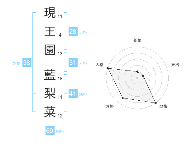 現王園 藍梨菜さんを姓名の画数から五運を鑑定