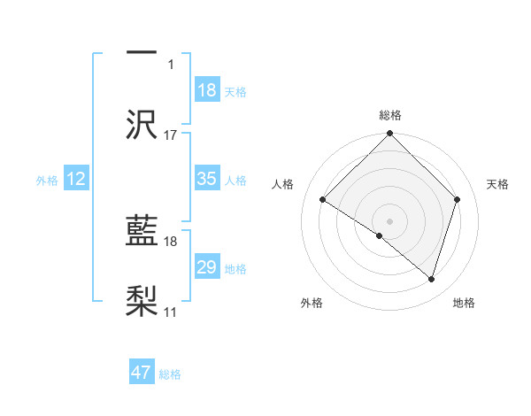 一沢 藍梨さんを姓名の画数から五運を鑑定