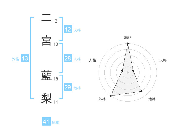 二宮 藍梨さんを姓名の画数から五運を鑑定