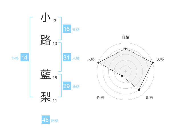 小路 藍梨さんの総格は45画の4点!