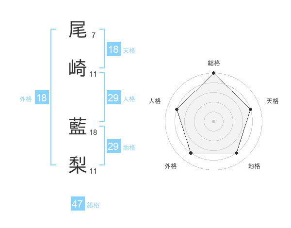 尾崎 藍梨さんを姓名の画数から五運を鑑定