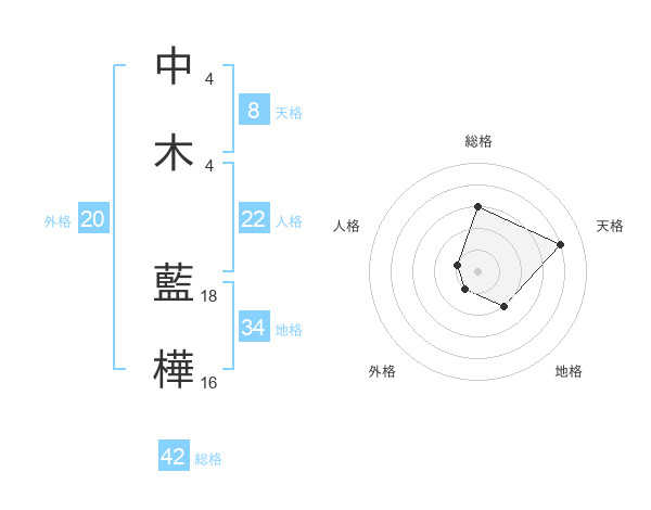 中木 藍樺さんの天格は8画の4点!