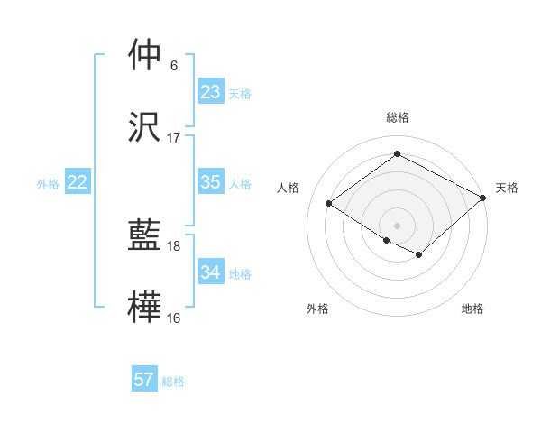 仲沢 藍樺さんを姓名の画数から五運を鑑定