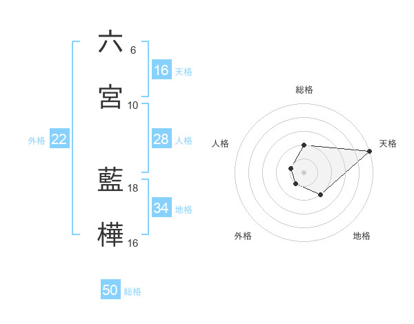 六宮 藍樺さんを姓名の画数から五運を鑑定
