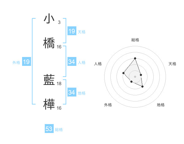 小橋 藍樺さんを姓名の画数から五運を鑑定