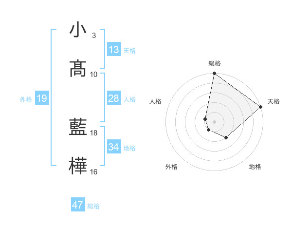 小髙 藍樺さんの総格は47画の5点!