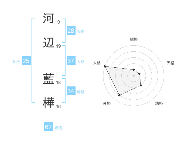 河辺 藍樺さんの総格は62画の1点!