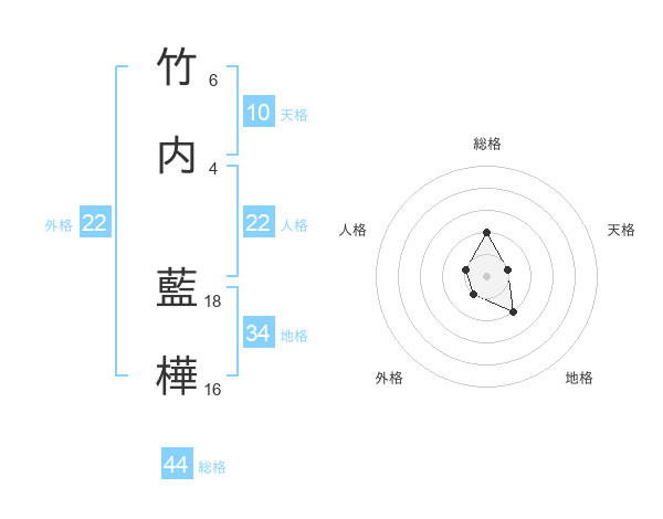 竹内 藍樺さんを姓名の画数から五運を鑑定