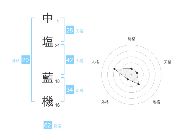 中塩 藍機さんを姓名の画数から五運を鑑定