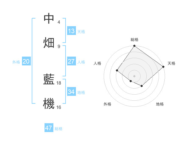 中畑 藍機さんを姓名の画数から五運を鑑定