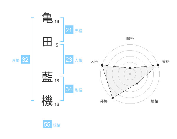 亀田 藍機さんを姓名の画数から五運を鑑定