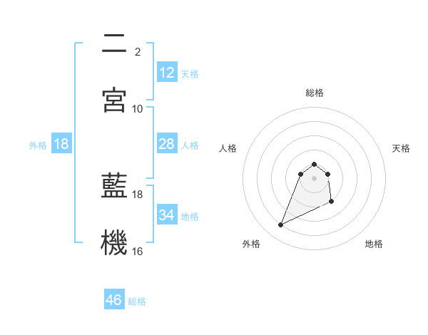 二宮 藍機さんを姓名の画数から五運を鑑定