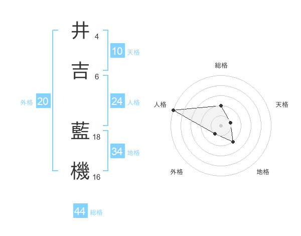 井吉 藍機さんの総格は44画の2点!