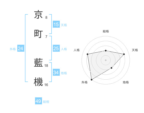 京町 藍機さんの外格は24画の5点!