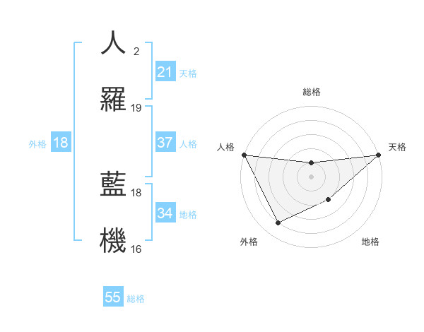 人羅 藍機さんを姓名の画数から五運を鑑定