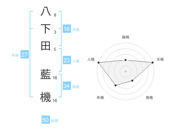 八下田 藍機さんを姓名の画数から五運を鑑定