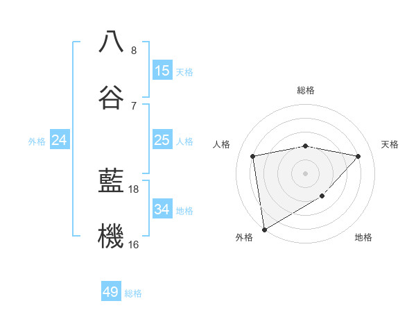 八谷 藍機さんの総格は49画の2点!