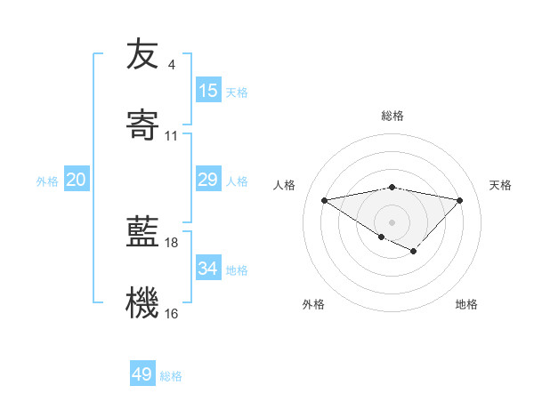 友寄 藍機さんを姓名の画数から五運を鑑定