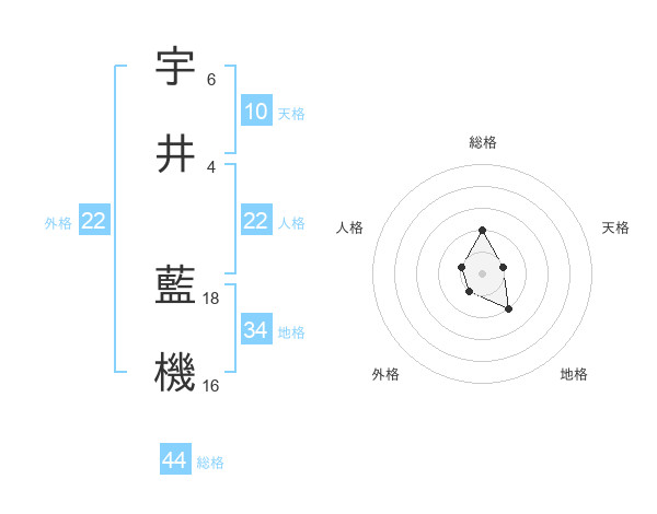 宇井 藍機さんを姓名の画数から五運を鑑定