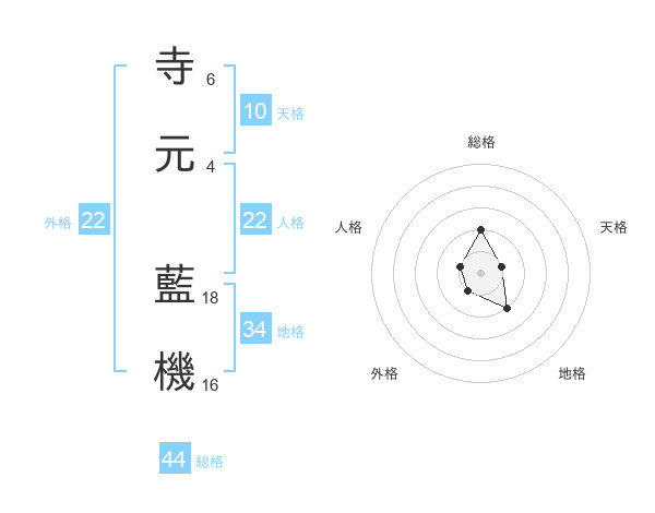 寺元 藍機さんの総格は44画の2点!