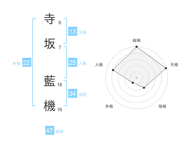 寺坂 藍機さんの総格は47画の5点!