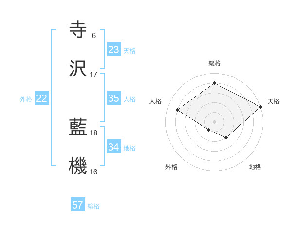 寺沢 藍機さんを姓名の画数から五運を鑑定