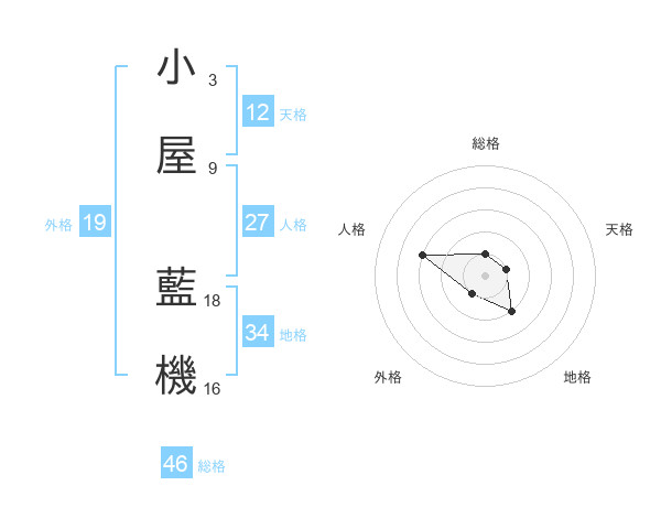 小屋 藍機さんを姓名の画数から五運を鑑定