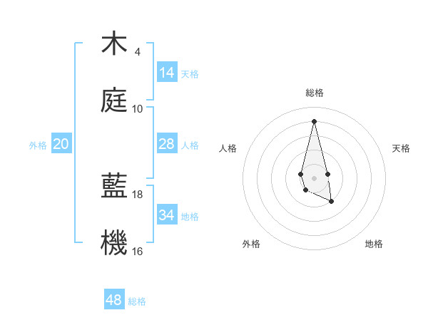 木庭 藍機さんの総格は48画の4点!