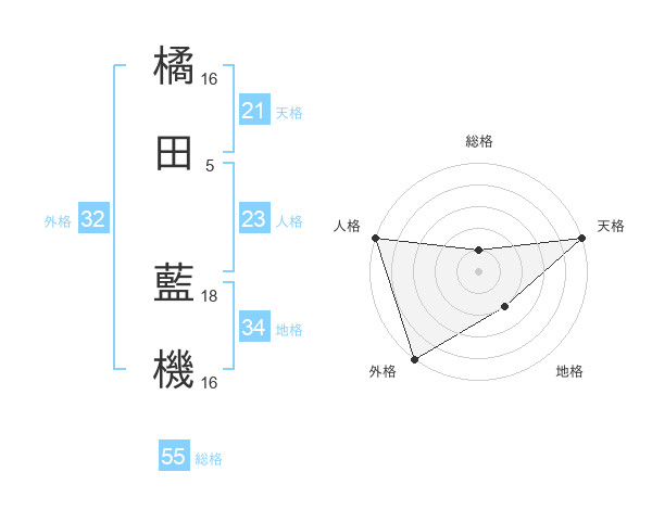 橘田 藍機さんを姓名の画数から五運を鑑定