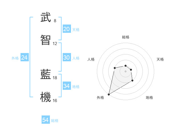 武智 藍機さんの天格は20画の1点!