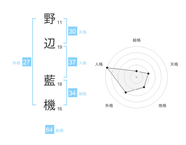 野辺 藍機さんを姓名の画数から五運を鑑定