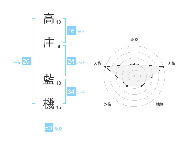 高庄 藍機さんの総格は50画の2点!