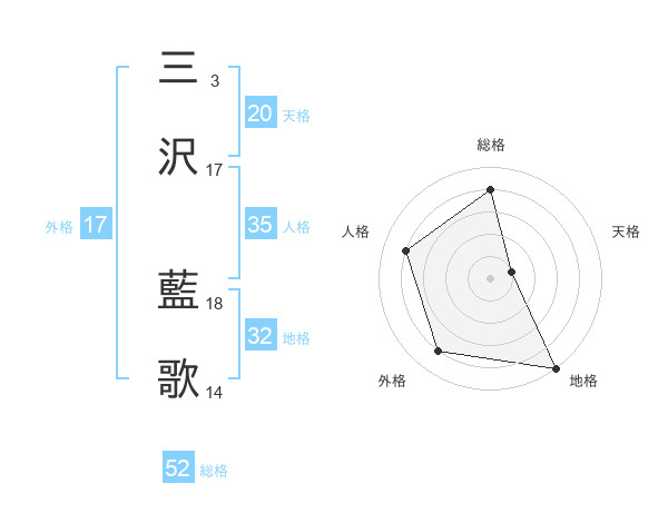 三沢 藍歌さんを姓名の画数から五運を鑑定