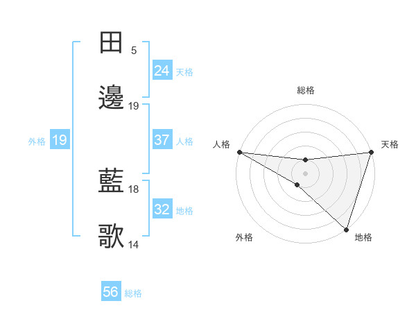 田邊 藍歌さんを姓名の画数から五運を鑑定