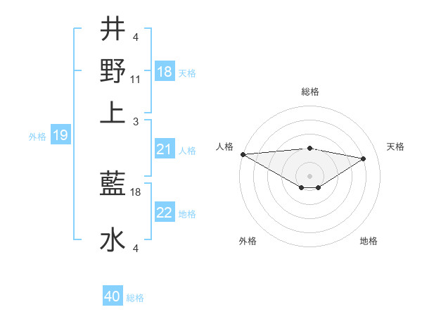 井野上 藍水さんを姓名の画数から五運を鑑定