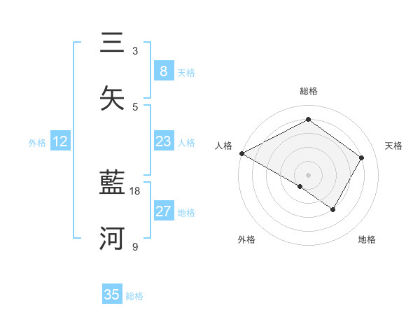 三矢 藍河さんを姓名の画数から五運を鑑定