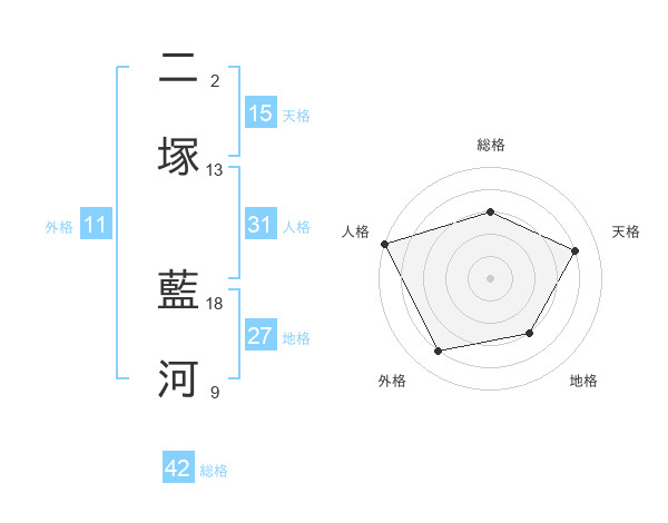 二塚 藍河さんを姓名の画数から五運を鑑定