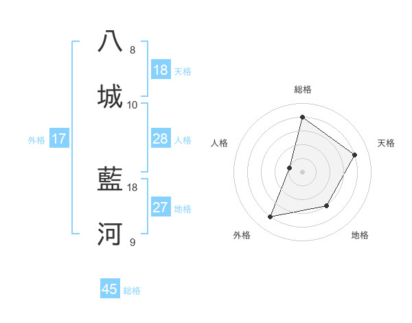 八城 藍河さんの天格は18画の4点!