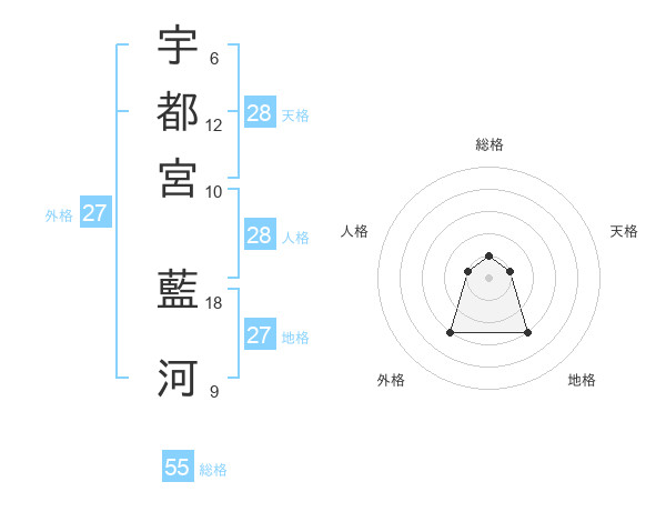 宇都宮 藍河さんを姓名の画数から五運を鑑定