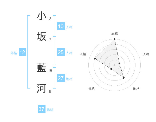小坂 藍河さんを姓名の画数から五運を鑑定