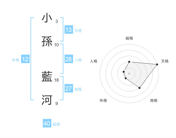 小孫 藍河さんの天格は13画の5点!