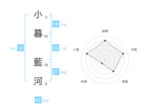 小暮 藍河さんを姓名の画数から五運を鑑定