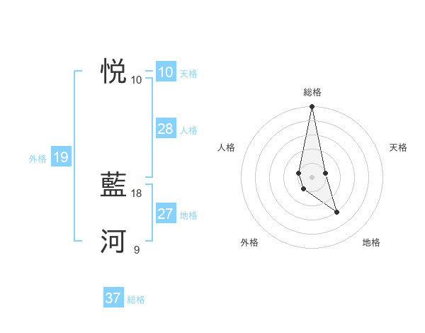 悦 藍河さんの外格は19画の1点!