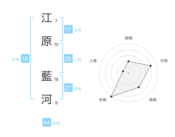 江原 藍河さんの総格は44画の2点!